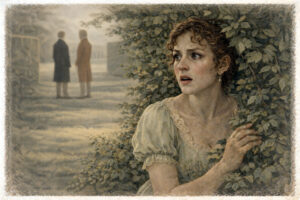 Elizabeth qui passait par là pour aller chercher Maria chez son amie Sophia, entendit les deux hommes discuter, elle ne pouvait pas les voir car ils étaient de l’autre côté d’une épaisse haie qui délimitait Rosings Park, mais elle reconnut parfaitement leur voix, même si le sens de ce qu’ils disaient était inintelligible au début. Mais lorsqu’elle se rapprocha, sans être détectée grâce au sentier herbeux qui amortissait ses pas, elle ne put s’empêcher, une fois encore, de les écouter. Elle s’arrêta. Peut-être en saurait-elle davantage sur les intentions du colonel. Les premières paroles qu’elle put discerner la mirent hors d’elle.